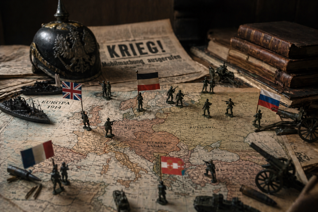 Eng damit verbunden war die fortschreitende Militarisierung der europäischen Gesellschaften. Rüstungswettläufe, die Aufwertung militärischer Institutionen und die zunehmende Durchdringung des politischen Denkens durch militärische Kategorien führten dazu, dass Krieg als legitimes und kalkulierbares Mittel der Politik erschien. Hobsbawm verweist insbesondere auf die Flottenrüstung und die strategischen Planungen der Großmächte, die eine Dynamik erzeugten, in der politische Entscheidungsspielräume zunehmend durch militärische Logiken eingeschränkt wurden.^4