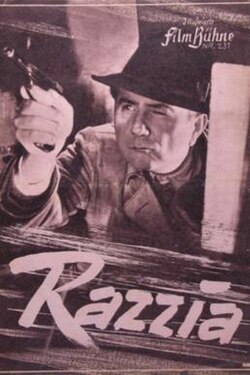 Der DEFA-Film „Razia“ (1947) von Werner Klingler spielt im Nachkriegsberlin und thematisiert den Schwarzmarkt. Kriminalkommissar Naumann kämpft gegen Schmuggler, wird jedoch ermordet. Sein Nachfolger Lorenz deckt Verrat auf und stellt die Täter. Ein realistischer Kriminalfilm über Moral und Not.