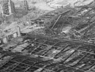 Filmdokument aus dem lmperial War Museum. Kriegszerstörung aus der Luft gesehen von einem britischen Flugzeug kurz nach der Kapitulation der Stadt am 11. April 1945.