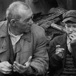 In den Trümmern eines zerbombten Hauses wohnt ein alter Mann mit seinen Kaninchen. Auf der Suche nach Kaninchenfutter begegnet er einem neunjährigen Jungen, der vor einer rauchenden Ruine sitzt. Der Junge bewacht seine in den Trümmern umgekommene Familie – Eltern und ein kleiner Bruder – damit die Ratten nicht die Leichen anfressen. Dem alten Mann gelingt es mit der Behauptung, dass Ratten nachts doch schlafen würden, sich mit dem Jungen zu verabreden, um ihm seine Kaninchen zu zeigen.