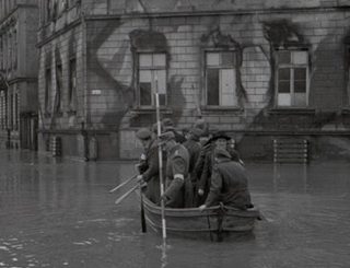 Die überraschende Hochwasserkatastrophe kostete drei Menschen das Leben. Der Sachschaden war extrem hoch. „Viele Gebäude, die Bomben überstanden hatten, fielen dem Hochwasser zum Opfer „